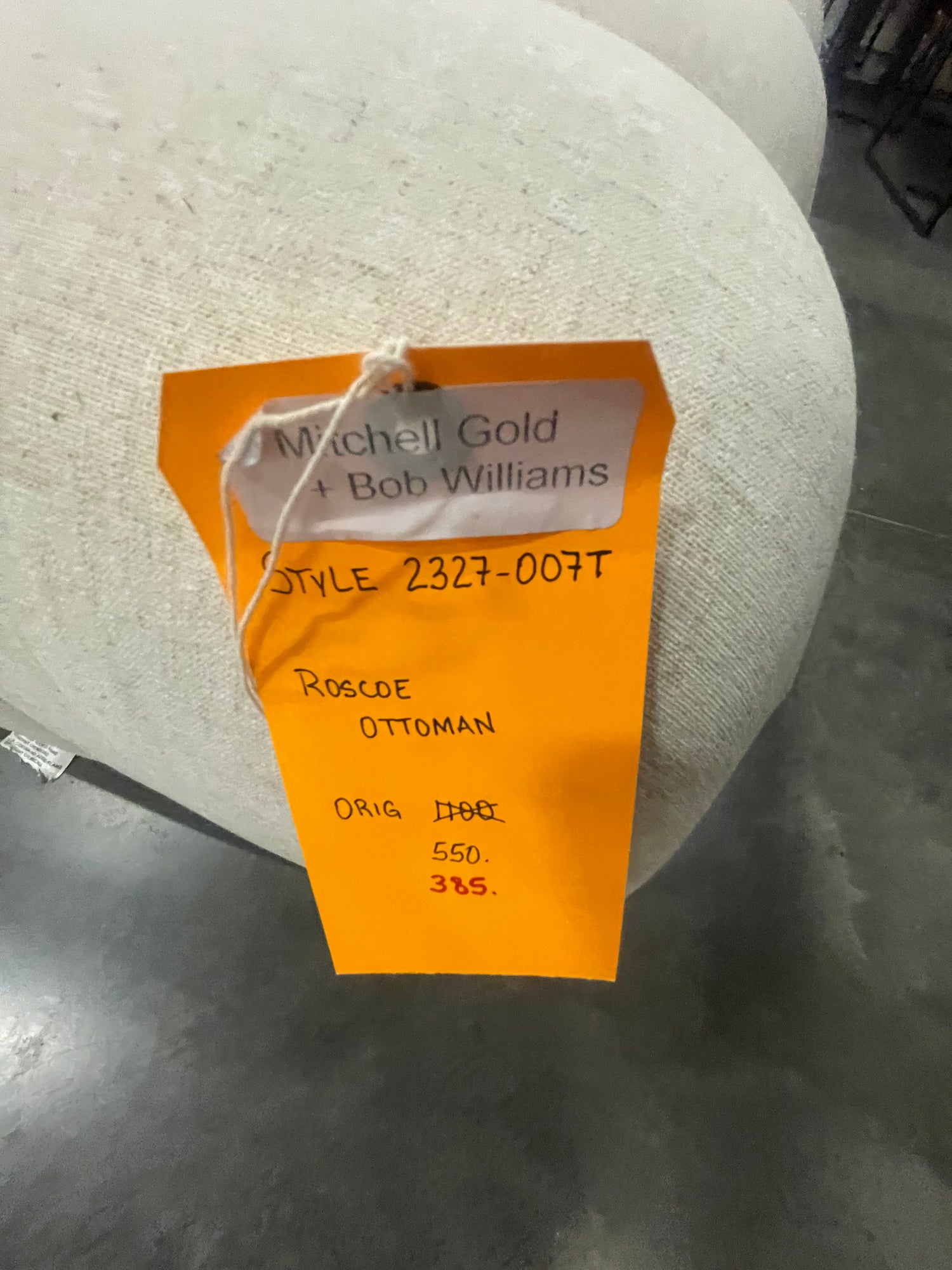 Mitchell Gold + Bob Williams Roscoe Ottoman is backordered and will ship as soon as it is back in stock.