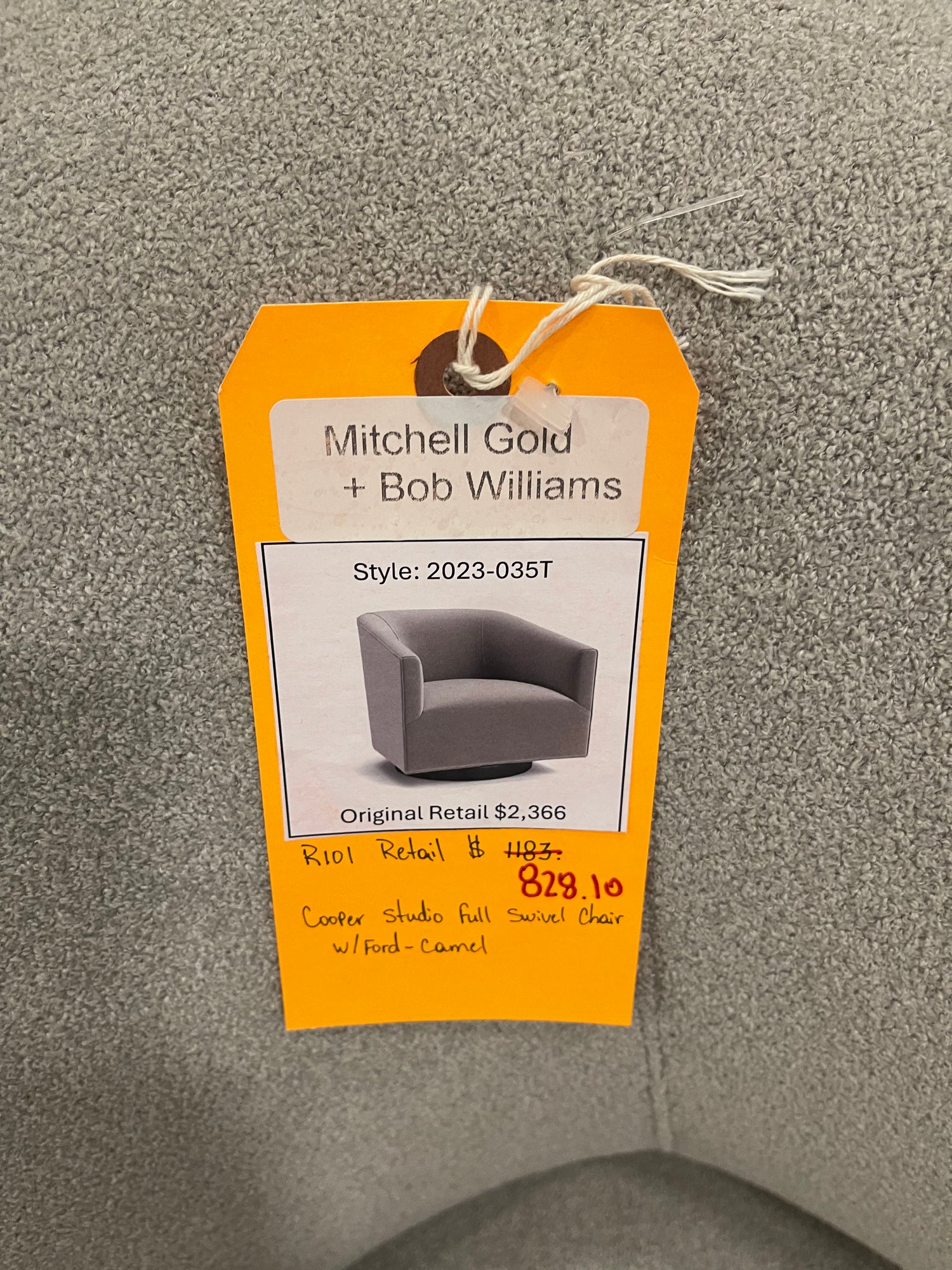 Mitchell Gold + Bob Williams Cooper Studio Full Swivel Chair with Ford Camel